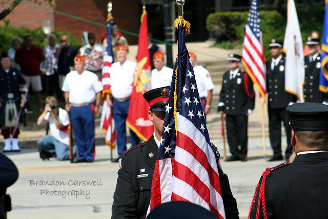 Today marked the 10 year anniversary of the terrorist attacks on the United States of America. The Twin Towers in New York City were struck by two planes that had been hijacked by terrorists. Then the Pentagon was struck by another plane, and a fourth plane was on it's way to The White House - but was overtaken by the passengers and later crashed into an empty field. Today there was a ceremony held in Downtown Urbana at the Courthouse in honor of those who were killed in the towers, and in honor of those who lost their lives in the war that broke out as a result of these terrorist attacks. Here are some photographs that I took from today's ceremony: